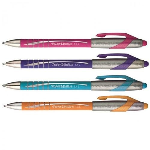4 x Papermate Flexgrip Elite Broad Ballpoint Pens. Turquoise, Pink, Orange, Purple