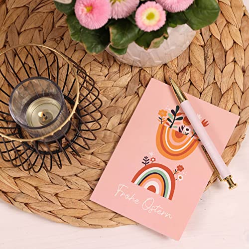 Papierdrachen Biglietti pieghevoli per Pasqua, 6 biglietti di Pasqua primaverili con busta per il periodo pasquale, saluti alla famiglia, design elegante, motivo boho con vernice UV, set da 5