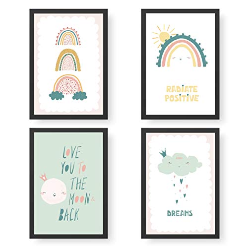 PaPIerDraCHeN 4 poster premium per bambini DIN A4 | Arte da parete per la stanza dei bambini - Arcobaleno - Stampe d'arte di alta qualità | Decorazione | Set di arte da parete