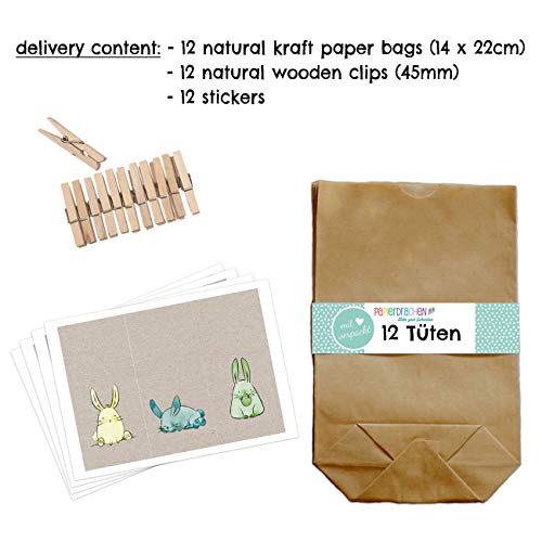 PaPIerDraCHeN 12 Sacchetti per Regali per la Pasqua Fai da Te e da riempire a Piacere - Cestino Pasquale Fai da Te con 12 Sacchetti di Carta e Adesivi con Coniglietto Pasquale - Design 19