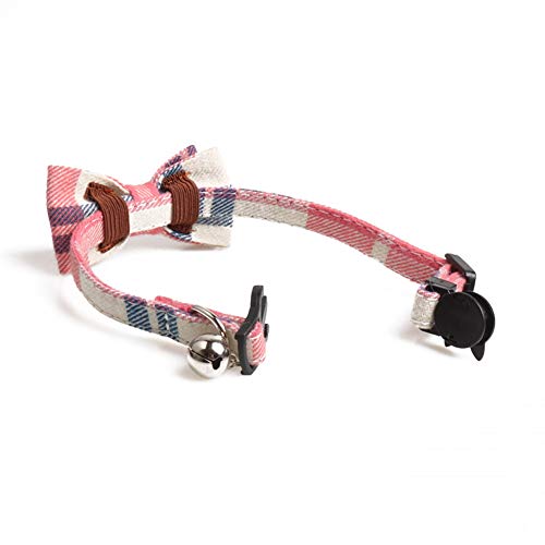 Yih Vane Papillon 2Pcs e Collare Classico Scozzese con campanella Regolabile per Gatto - Rosso e Rosa