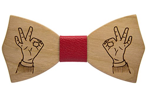 Papillon in legno di ciliegio con nodo in pelle accessori moda cerimonia mod.ok (rosso)