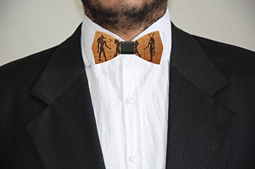 Papillon in legno di ciliegio con nodo in pelle verde accessori moda cerimonia mod.tutankhamon