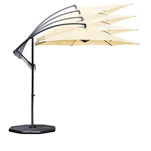 Design elegante e semplice funzionamento caratteristiche: design elegante offset da appendere con manovella a sbalzo e sistema operativo per sollevare facilmente e deporre, Easy-slide e sistema di blocco funzionamento per più angoli di ombreggiatura, antivento nella parte superiore per consentire il flusso d' aria e ridurre pressione del vento per migliorare la stabilità.