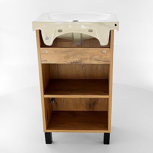Paplinskimoebel Armadietto da bagno con lavandino, 50 x 40 x 84,5 cm, mobiletto per bagno, piccoli ospiti, lavabo con mobiletto da 50 cm - bianco (Rovere Lancillotto)