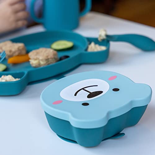 TUM TUM Set Pappa Svezzamento, Ciotola con Coperchio e Cucchiaino Svezzamento, Set Pappa, L'Orso Boris, Blu