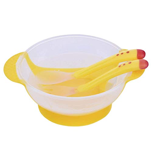 Txyk Set Pappa Ventosa di Sicurezza, Ciotola di Pappa, con Forchetta per Cucchiaio Sensibile al Calore per Bambino (Giallo)
