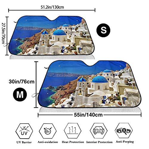 Parabrezza Parasole, Santorini sorprendente, Isole Greche Protezione UV pieghevole Auto Parasole per auto impedire la vostra auto da Sun Calore & Glare fresco Tenere veicolo