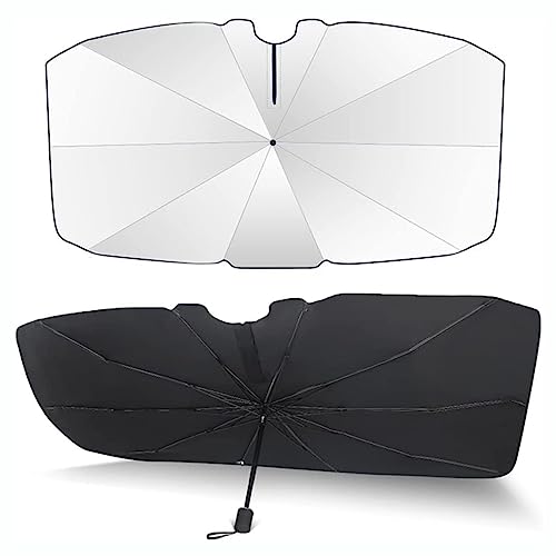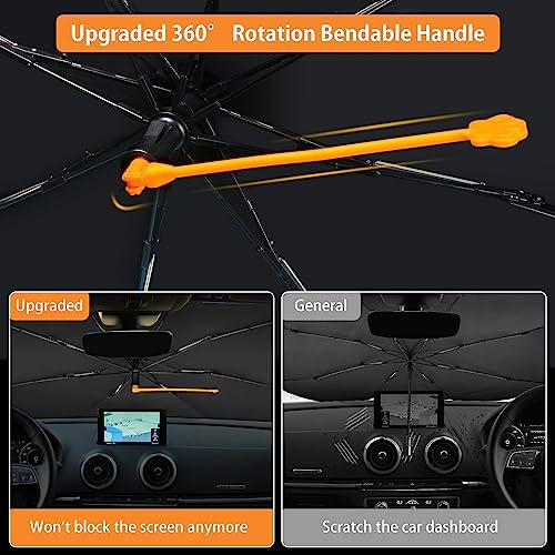 【Facile da riporre】: il parasole per parabrezza per auto in stile ombrello si apre e si piega in pochi secondi, molto comodo per l'uso quotidiano, design pieghevole per riporlo facilmente, risparmiando spazio.