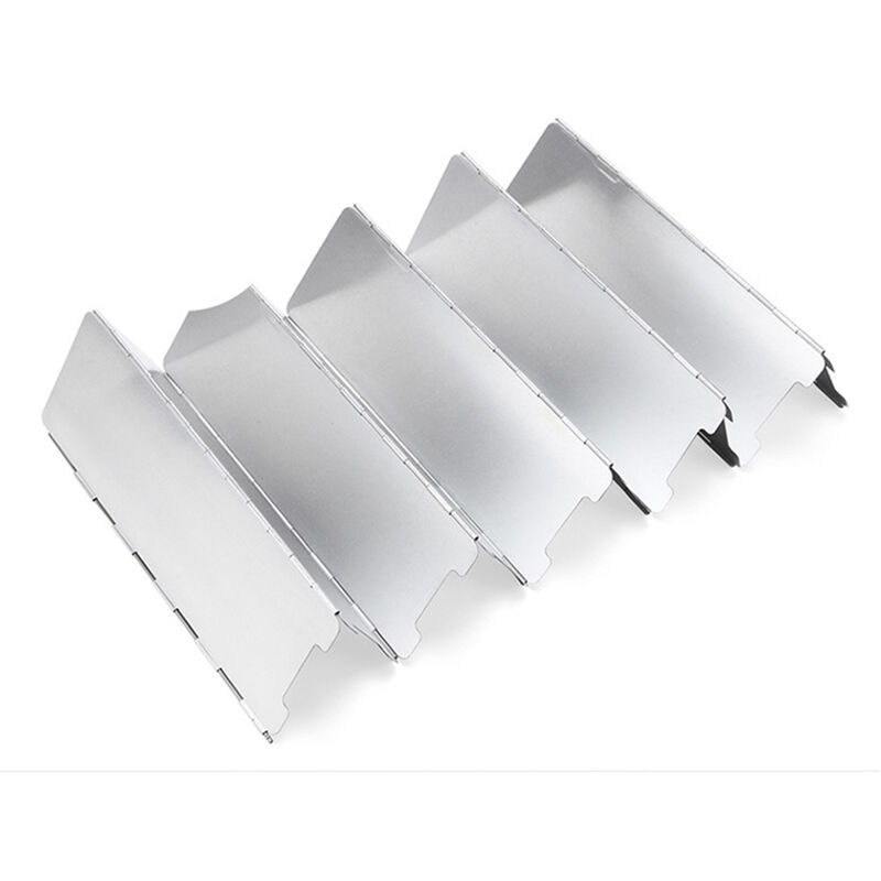 Questo parabrezza pieghevole e un'ottima aggiunta alla cucina all'aperto con una stufa da campo. Blocca il vento per una cottura piu rapida e la ritenzione di calore. Puoi anche usarlo per aiutarti ad accendere un fuoco in condizioni di vento. Caratteristiche: Materiale in lega di alluminio resistente. Design a 10 piastre, protegge il vento dalla stufa e risparmia carburante. Pioli integrati possono fissarlo a terra. Pieghevole per una facile conservazione;