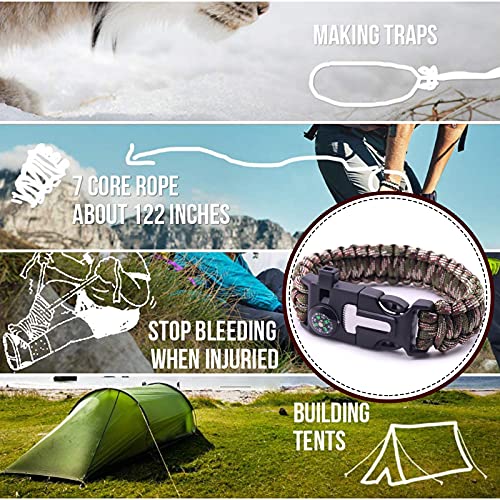 【Corda robusta e affidabile】Il braccialetto salvavita può essere smontato rapidamente quando la corda è estremamente necessaria, e diventa una corda salvavita in grado di sopportare completamente il proprio peso. In caso di emergenza può smettere di sanguinare, accendere un fuoco, fare trappole, legare temporaneamente tende, tagliare corde e trasportare un equipaggiamento completo per evitare perdite, ecc.