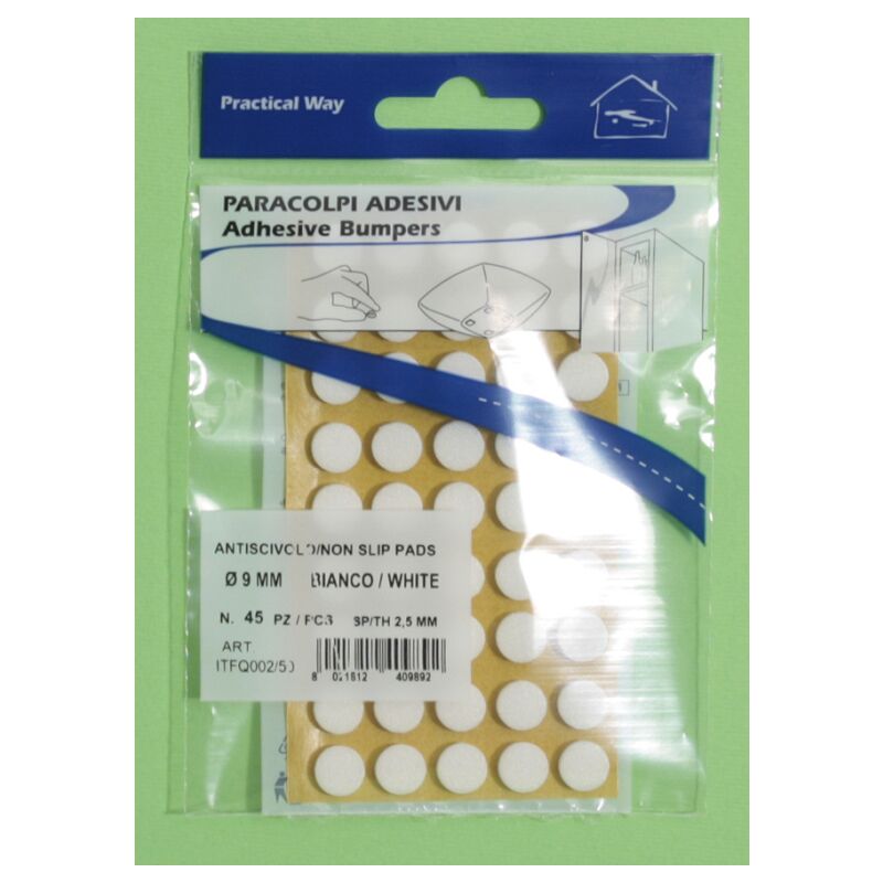 Paracolpi adesivi antiscivoli Mussit Caratteristiche tecniche: -Finitura: Bianco -Misure:9 mm. -Spessore:2,5 mm. La confezione comprende: -nr.0x Gommino Disponibile in varie finiture. Siamo rivenditori di Gommini, Paraspigoli e Battisedie ZingaroWeb è rivenditore di Gommini, Paraspigoli e Battisedie. La nostra conoscenza del catalogo garantisce all'acquirente il miglior compromesso tra servizio e assistenza. Il nostro Team è a completa disposizione dell'acquirente in tutte le fasi pre-post vendita. Hai un problema? Contattaci ora in chat.