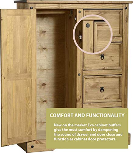 Comfort e funzionalità: i cuscinetti Eva offrono il massimo comfort smorzando il suono di cassetti e ante chiudendo e funzionano come protezioni per ante e paraurti anti scosso.