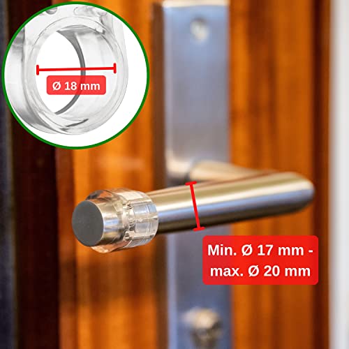 Paracolpi per maniglia per porte, 10 pz, Previene segni sulle pareti, Trasparente, Apertura Ø 18 mm, in silicone flessibile + elastico, Fermaporta per Maniglia, Tampone Proteggi Finestre, Fermaporte
