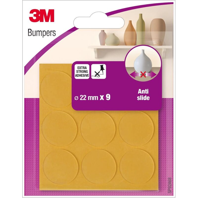 3M - 9 PARACOLPI PROTETTIVI ANTI SLITTAMENTO FINI D 22MM I paracolpi protettivi 3M sono ideali per smorzare gli urti degli oggetti sulle superfici e risultano elementi di protezione per numerosi tipi di utilizzo. Hanno una lunga durata e sono dotati di adesivo 3M In gomma ultraresistente EXTRA STRONG ADHESIVE