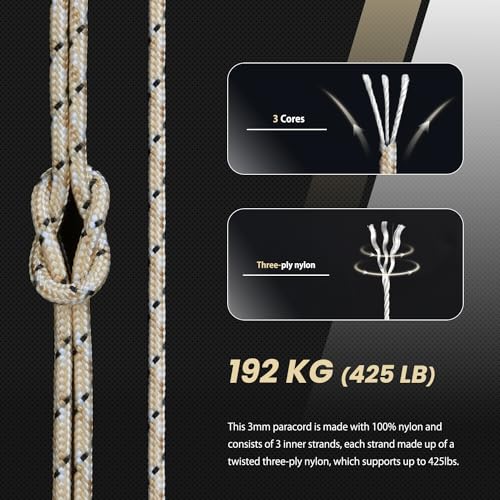 MULTIUSO: Il nostro paracord di nylon è prodotto più stretto e più fluido in uso. Perfetto per i kit di tendatura, campeggio, nautica, caccia, sopravvivenza, realizzazioni di paracord come bracciali, involucri, cinture, cordini e centinaia di oggetti decorativi.
