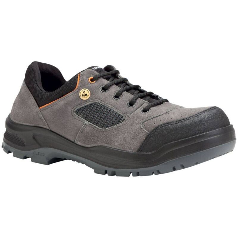 Caratteristiche: Scarpe antinfortunistiche basse in suede, tomaia leggera e traspirante Alette da 4,5 mm per una presa ottimale su tutte le superfici Tomaia in trimateriale evidenziata da inserti arancioni per accentuarne il design Inserto rifrangente sul retro per una migliore visibilità Fodera in tessuto traspirante per una buona circolazione dell'aria Comfort d'uso ottimale e anti-fatica con VPS (Arco plantare sospeso) Sottopiede estraibile in schiuma/rete PU ESD Suola in gomma con protezione di livello normativo S1P, antiscivolo, antiperforazione, antistatica, resistente agli idrocarburi Buon assorbimento degli urti con il cuscino d'aria Parade'air e la dissipazione degli impatti DRS Puntale in policarbonato 200J Campi di utilizzo: elettronica Materiali: Tomaia in crosta scamosciata Rivestimento in tessuto Puntale in policarbonato Sottopiede in tessuto su schiuma PU ESD Suola in poliuretano a doppia densità VPS (arco plantare sospeso), DRS (delete resonance system) Tecnologie