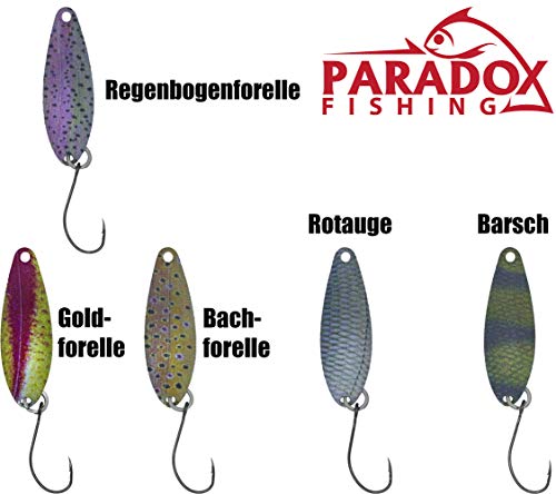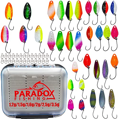 Paradox Fishing Spoon - Set di 33 spoons con scatti da 1,2 g/1,5 g/1,6 g/2 g/2,5 g/3,5 g per trote spoons trote