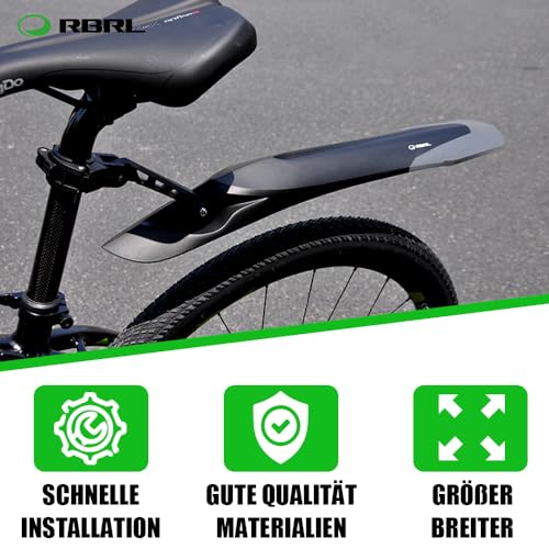 Universale: il parafango RBRL può essere utilizzato per tutti i tipi di biciclette (e-bike, MTB). Adatto per ruote da 24-29 pollici (assicurarsi che la forcella anteriore abbia un foro e il diametro del foro sia di 19-35 mm), per pneumatici di larghezza da 1,50 a 2,5". Non preoccuparti della schiena bagnata.