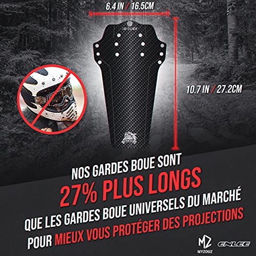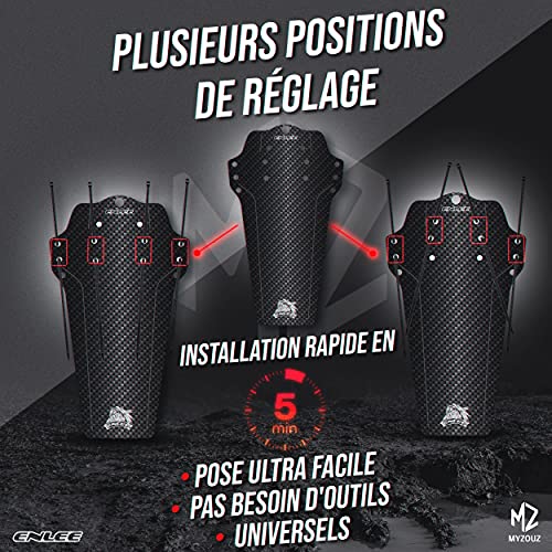 Robusto e leggero: i nostri parafanghi beneficiano di una buona qualità di design, sono pieghevoli sugli spazi vuoti per irrigidire l'intero pezzo in plastica. Giocanti di buon spessore, tuttavia, rimangono abbastanza flessibili da poter adattarsi alla forma di tutte le forcelle sul mercato. Questi sono accessori efficaci per rimanere asciutti il più possibile.