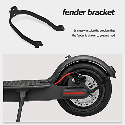 Supporto parafango posteriore: il supporto parafango posteriore può eliminare il rischio che il cavo LED entri in contatto con la ruota e fissare il parafango in posizione, vengono fornite anche 2 viti di fissaggio, non è necessario '' acquista viti extra, basta svitare la vite posteriore della spia e fissare la staffa del parafango al tuo scooter elettrico con i bulloni esistenti, quindi regolare gli elementi per assicurarsi che l'installazione sia sicura.