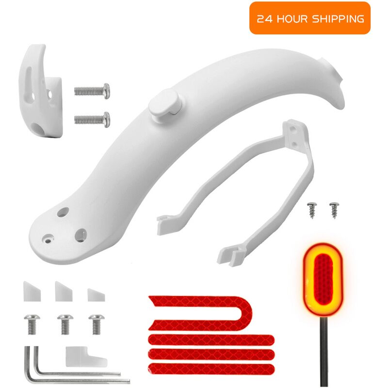 Nome del prodotto: Xiaomi M365 Mijia Accessori per scooter elettrico Parafango posteriore Staffa di assorbimento degli urti Set combinato di copertura protettiva Materiale del prodotto: PE Peso del prodotto: 0,2 kg Confezione del prodotto: Imballaggio sacchetto OPP Elenco: Ali: 1 Luci posteriori: 1 Staffa: 1 (con 2 viti) Adesivi riflettenti: 1 Bulloni parafango: 3 Avvita il tappo antipolvere: 3 Strumenti Fender: 2 Gancio per la testa: 1 (con 2 viti) Tappo in silicone per gancio parafango: 1