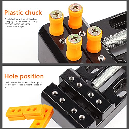 Funzione: questa mini morsa con scanalatura orizzontale e la barra di bloccaggio in plastica di bambù con incavo a croce può bloccare e fissare oggetti rotondi, quadrati e irregolari da 0 a 57 mm. È adatto per piccoli oggetti come olive, noci, bodhi, piccola pietra indiana, ecc. Con un buon effetto di fissaggio.