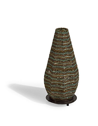 Paralume con perline color bronzo e celeste e basamento in metallo