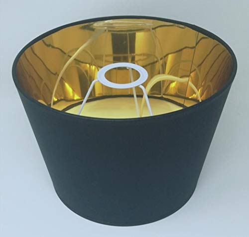 Paralume per lampada da tavolo, diametro 25 cm, in stile impero, colore nero/bianco, con fodera dorata, fatto a mano moderno Nero