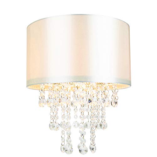 Paralume in tessuto color crema satinato di alta qualità con goccioline trasparenti in acrilico che emanano un effetto cristallo accattivante quando la luce splende attraverso.