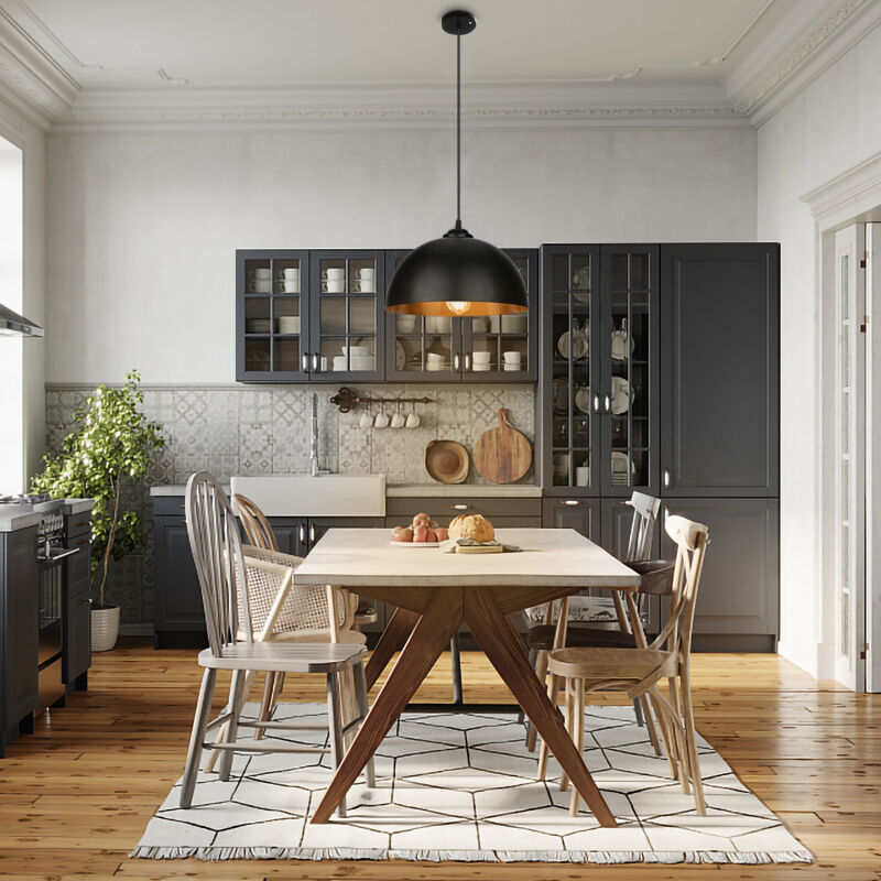 Design classico - : questa lampada a sospensione ha un design classico ed elegante con uno strato esterno nero opaco. L'interno è dipinto in bronzo. e la luce emessa non solo viene riflessa perfettamente. ma emette anche un piacevole bagliore. creando un'atmosfera elegante e romantica. 【Regolazione gratuita】: il cavo di sospensione può essere regolato fino a un massimo di 90 cm. è possibile regolarlo su una lunghezza di sospensione adeguata prima dell'installazione. L'attacco E27 è per LED. lampade a risparmio energetico. lampade ad incandescenza (max. 60W) Voltaggio: 220-240V / 50Hz. Puoi combinare luci diverse per creare atmosfere diverse a seconda dell'ambiente. (La lampadina non è inclusa nella confezione). 【Installazione semplice】: il manuale di istruzioni e le viti sono inclusi nella confezione.Puoi installarlo facilmente da solo leggendo la guida all'installazione di facile comprensione. 【Pratico e robusto】: l'alloggiamento è realizzato in metallo solido.Classe di protezione