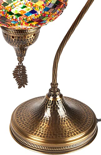 Paralume in stile turco marocchino Tiffany, realizzato a mano, con mosaico colorato, da tavolo, scrivania, comodino, lampada a collo di cigno, 48,3 cm (verde)