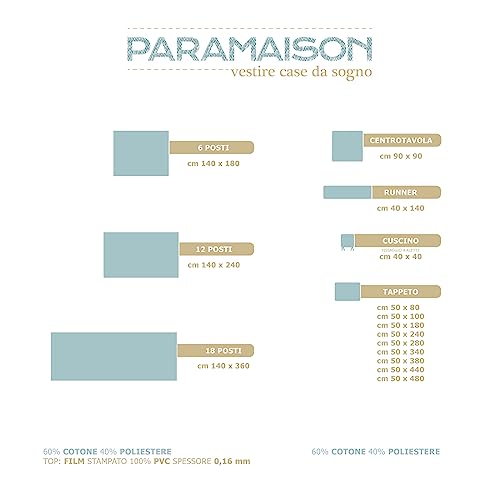 ✔️ La serie in stampa digitale Paramaison comprende le tovaglie, centrotavola, coprisedia, runner e passatoia cucina. Divertiti a coordinare ed abbinare il tuo arredo! Paramaison, è facile prendersi cura di sè