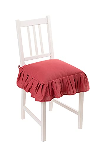 PARAMAISON Cuscino Sedia 40x40 con Lacci Panama, Cuscino Interno ed Esterno, Sfoderabile con Zip, Cotone, Laccetti di Ritenzione, Tinta Unita, Lampone