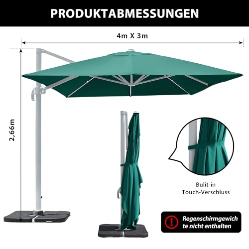 Paramondo parapenda Ombrellone da giardino decentrato 4 x 3 m (rettangolare/verde) / Telaio con base di appoggio a croce inclusa (antracite)