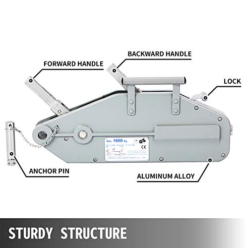 【COSTRUZIONE DUREVOLE】 - Costruito con corpo pressofuso in lega di alluminio, piastra e albero in acciaio e fune d'acciaio lunga 25 m / 82', ha un'elevata forza di rottura e resistenza all'usura. La capacità nominale è di 3500 libbre.