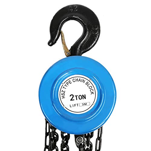 Paranco a Catena 2 Tonnellata Argano Sollevatore Manuale 3 Metri, per officina, garage, fabbriche, in acciaio, blu