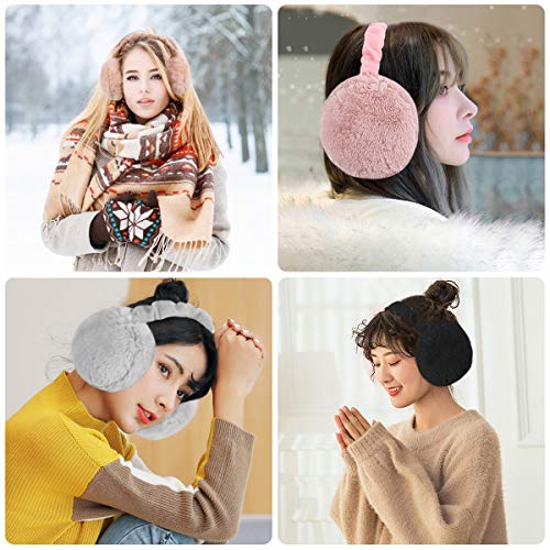 Paraorecchie Inverno Caldo-Paraorecchie Peluche,Pieghevole Paraorecchie Invernali Paraorecchie Donna Regolabile Morbido Adatto per la Corsa (Nero + polvere per la pelle)
