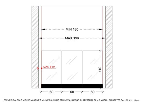 Parapetto in vetro kit montaggio L 60 x H 100 cm in vetro float chiaro 8+8 indurito PVB 1,52 con profilo di alluminio.