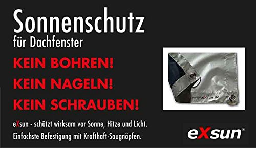 Parasole eXsun per Velux S08/608 tetto finestra Rollo, calore protezione, del muro necessaria Rollo - Con ventose potere, nessun foro - non fottere - viti (GGU, GGL, GPU, GPL, GTL, GHL, GHU, GTL, per modelli, plissettate, VU, VL, VKU), Poliestere, Grau / Silber, VELUX Größen: S08 / 608