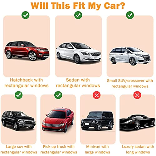 【Adatto per la maggior parte dei veicoli】 La protezione solare che il finestrino esteso può estrarre è adatta per il 98% del finestrino dell'automobile. Lunghezza finestra (max): 120 cm, altezza finestra (max): 55 cm. Solo lunotto, si prega di misurare le dimensioni del lunotto dell'auto prima dell'acquisto.