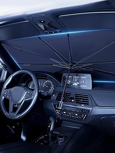 【Facile da riporre】 Il parasole per parabrezza della auto in stile ombrello si apre e si piega in pochi secondi, molto comodo per l'uso quotidiano, design pieghevole per riporlo facilmente, risparmiando spazio