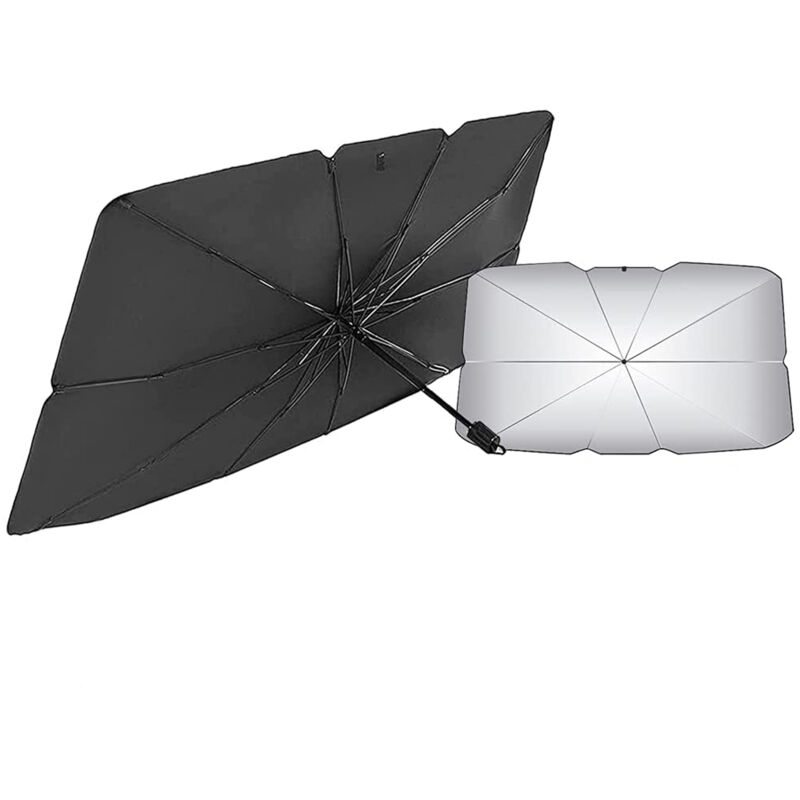 Parasole auto ideale per mantenere la tua auto fresca nelle calde giornate estive! Caratteristiche tecniche: Parasole per auto Ad ombrello Facile da usare Protezione dai raggi UV Materiale: poliestere Colore: nero e silver Dimensioni: 125 x 75 x 34 cm circa Peso: 0.325kg La confezione contiene: Nr. 2 Parasole
