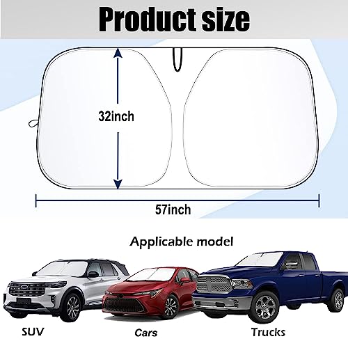 Ampia gamma di misure - Il nostro parasole per finestrini è un accessorio indispensabile per l'auto, progettato per adattarsi alla maggior parte dei parabrezza di dimensioni standard, con misure di 57 x 32 pollici per una vestibilità sempre perfetta. Il nostro parabrezza per auto per il finestrino anteriore offre la migliore vestibilità per il vostro parabrezza, fornendo una copertu
