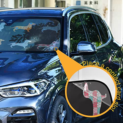 Parasole per parabrezza per cani bassotto per auto, camion, furgoni, visiera parasole pieghevole per finestrino anteriore auto, blocco protezione raggi UV, accessori interni auto 139,7 x 70,1 cm