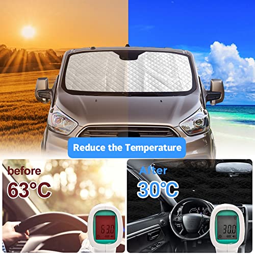 Compatibilità: parasole per finestrino anteriore compatibile con Ford Transit Custom 2012 2013 2014 2015 2016 2017 2018 2019 2020 2021 2022, si prega di verificare se il veicolo è lungo o corto prima dell'acquisto