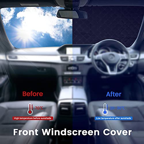【Materiale di alta qualità】Composto da quattro strati di materiali ad alta densità(foglio di alluminio, cotone, cotone composito, non tessuto), l'copri parabrezza per auto è resistente alte temperature, Lo strato interno morbido non causerà alcun graffio sul parabrezza. Può proteggere efficacemente il parabrezza dal sole, dai raggi UV e dall'accumulo di calore, Mantiene la tua auto fresca anche nelle giornate più calde. Tu e la tua famiglia non dovrete più sopportare sedili e volanti caldi!