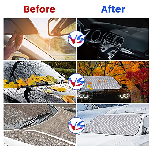 【Copertura del parabrezza adatta per tutte le stagioni】 In estate, fornirà protezione solare e protezione UV per mantenere la tua auto fredda. In autunno / primavera, impedirà l'intrusione di foglie cadute, polvere e escrementi di uccelli, risparmiando tempo per la pulizia. In inverno, la copertura del parabrezza può proteggere la tua auto da neve / ghiaccio / gelo / acqua. Quindi puoi evitare il ghiaccio / neve al mattino.