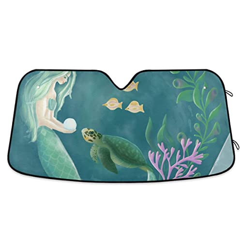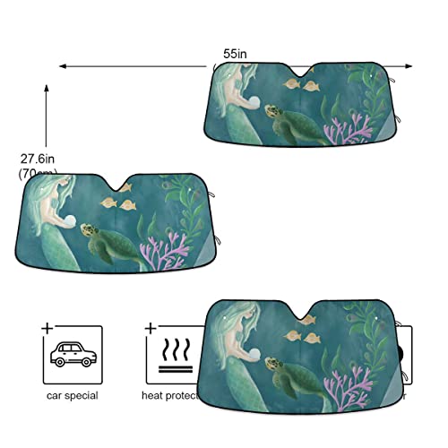 Parasole per parabrezza a forma di tartaruga a sirena per auto, camion, SUV, visiera parasole pieghevole per finestrini anteriori, per auto, parasole, raggi UV, accessori interni auto, 55 x 70 cm