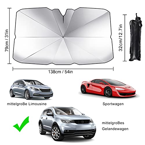 Parasole Auto Parabrezza Interno, 79x138cm (31x54in) Parasole per Parabrezza Anteriore per Auto, Blocca il 99.9% dei Raggi UV, Pieghevole Ombrello Parasole per Auto, SUV, Camion, Autocarri